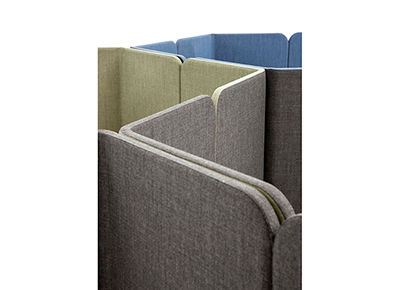 Es ist unglaublich, was man mit diesen beiden Elementen anstellen kann. Sie können Zweisitzer-Sofas, Dreisitzer-Sofas, Fünfsitzer-Besprechungsräume schaffen oder es einfach als Wandsegmente verwenden, um abgeschiedene Privatsphärenbereiche in Lounges, Büros und öffentlichen Räumen zu schaffen.