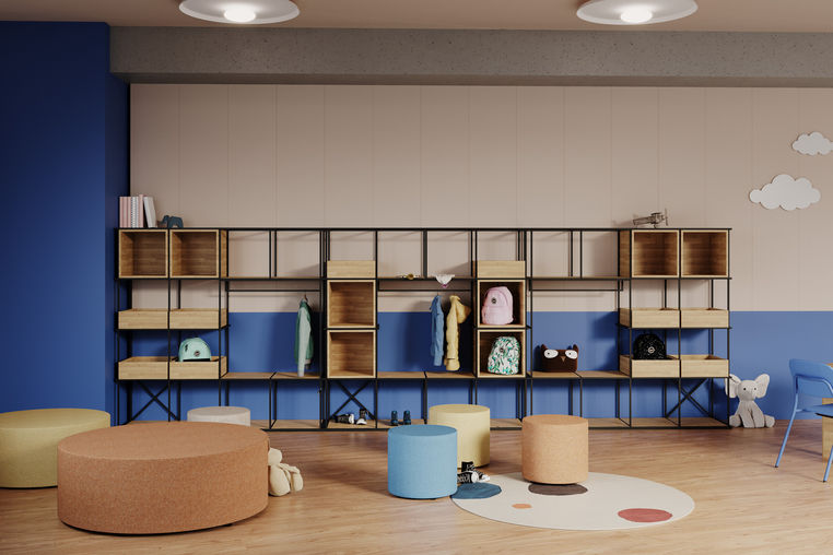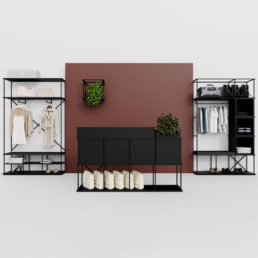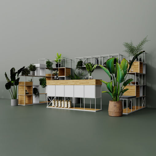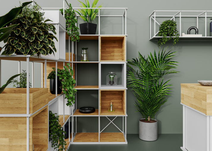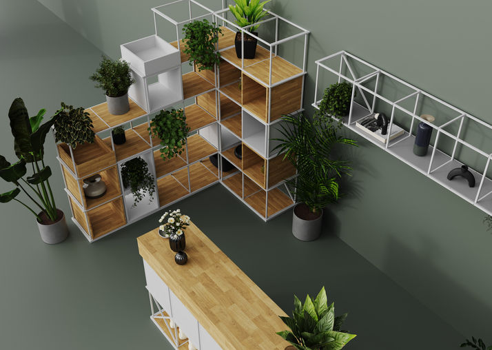 Wir können selbst Regale aus vertikalen und horizontalen Rahmen und Zubehör herstellen: Sitze, Regale, Boxen, Akustikplatten, Bretter und Aufhänger.