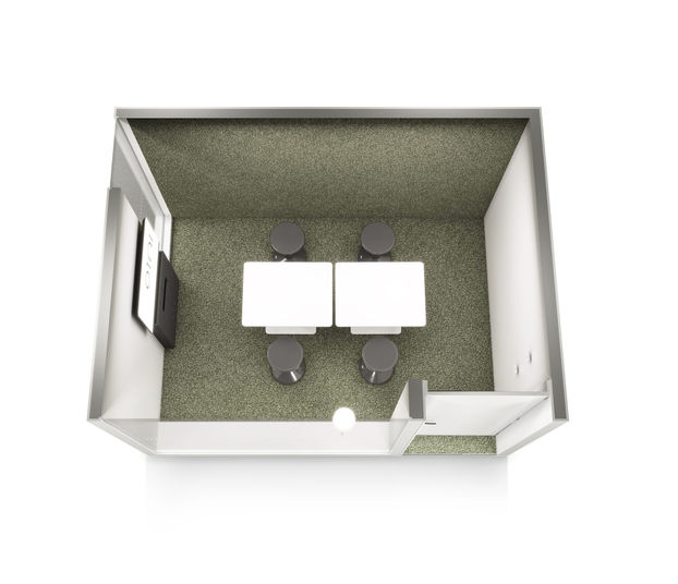 Die POD 4 Meeting Box ist perfekt für private oder vertrauliche Meetings sowie anpassungsfähige Arbeitsbereiche. Der Schallschutz in diesem Besprechungsraum ist aufgrund seines isolierenden Aufbaus hervorragend. POD 4 Besprechungsboxen können ohne Änderungen an Wänden oder anderen bestehenden Strukturen installiert und an einem anderen Ort wieder aufgebaut werden.